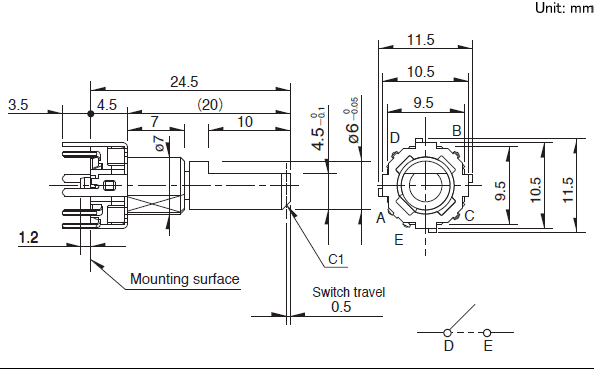 9.5x9.5x4.5 9型金屬軸型 本體尺寸9.5mm的小型·立式,為安裝面積的空間節(jié)省化做出了貢獻。