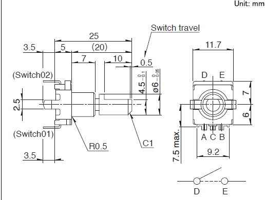按開(kāi)開(kāi)關(guān)行程: 0.5mm