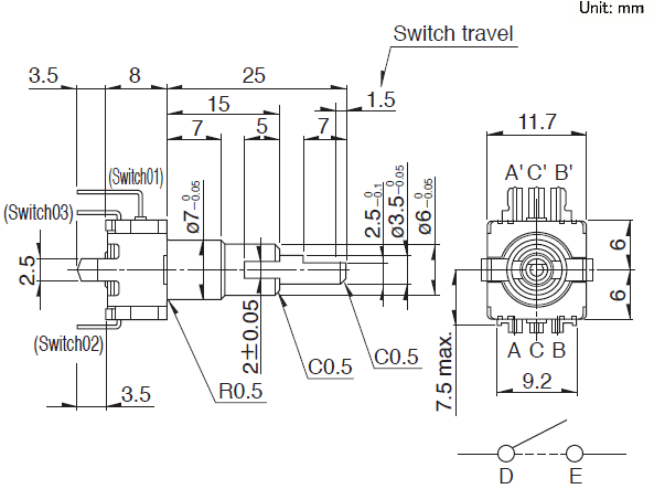 按開開關行程: 平軸 0.5mm 槽軸 無