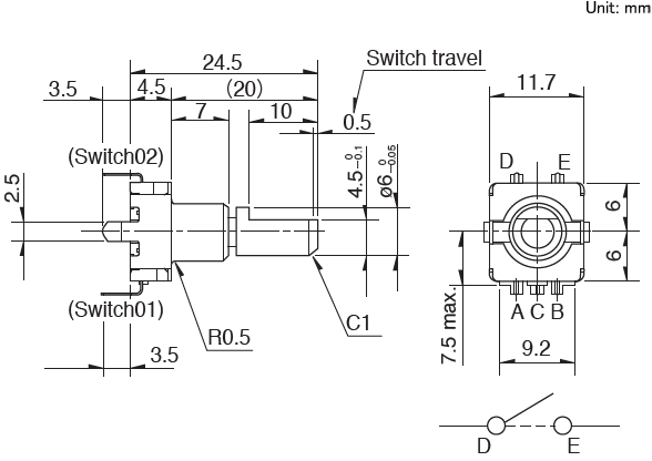按開(kāi)開(kāi)關(guān)行程: 0.5mm