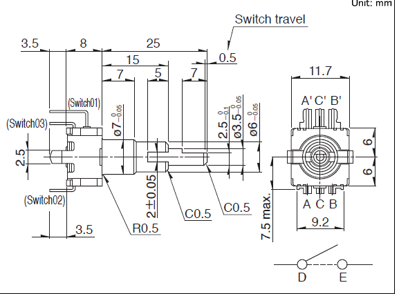 操作部長度: 內(nèi)軸=25mm 外軸=15mm