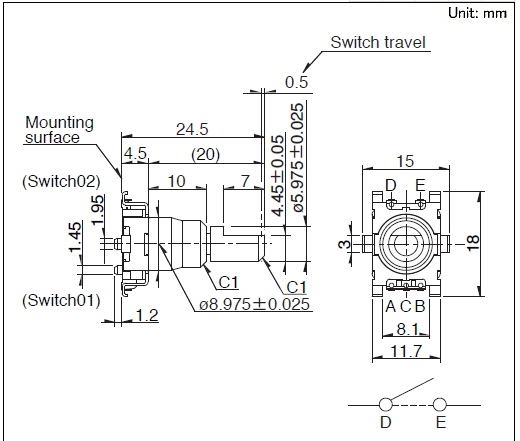 按開開關(guān)行程: 0.5mm