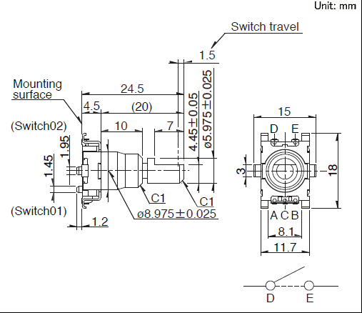 操作部形狀: 平軸