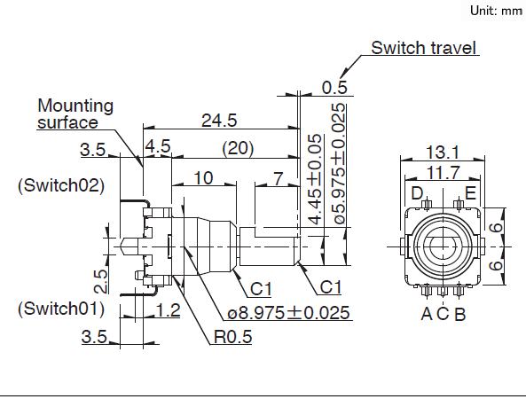 按開開關(guān)行程: 0.5mm