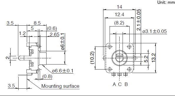 12.4x13.2x5 12型絕緣軸型 有各種各樣的絕緣軸型編碼器。