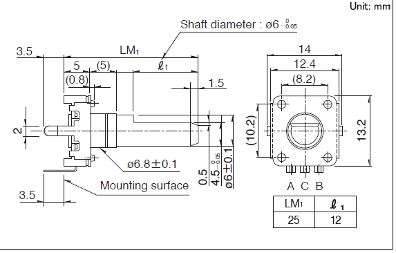 12.4x13.2x5 12型絕緣軸型 有各種各樣的絕緣軸型編碼器。