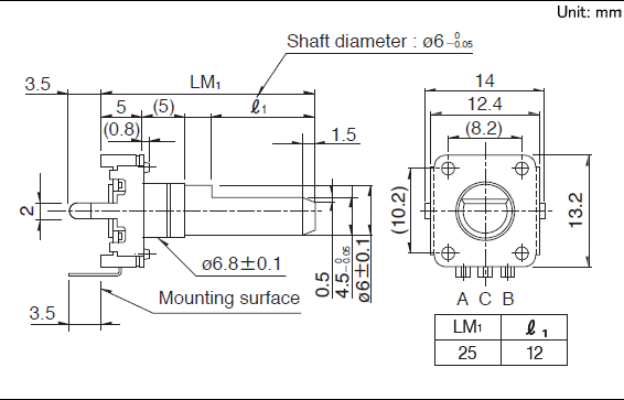 12.4x13.2x5 12型絕緣軸型 有各種各樣的絕緣軸型編碼器。