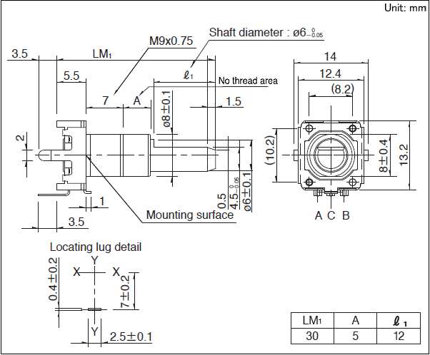 12.4x13.2x5 12型絕緣軸型 有各種各樣的絕緣軸型編碼器。