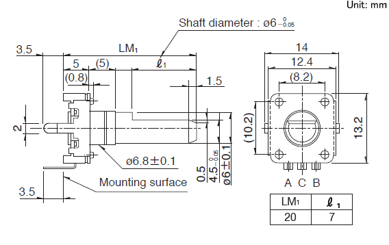12.4x13.2x5 12型絕緣軸型 有各種各樣的絕緣軸型編碼器。