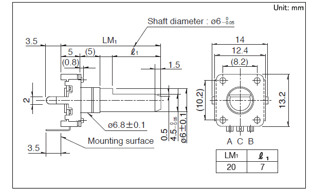 12.4x13.2x5 12型絕緣軸型 有各種各樣的絕緣軸型編碼器。
