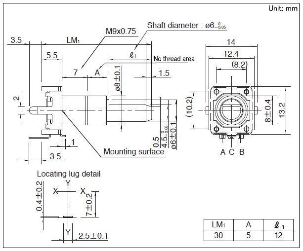 12.4x13.2x5 12型絕緣軸型 有各種各樣的絕緣軸型編碼器。