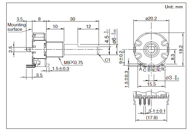 20.2x19.2x10 20型金屬軸型 以相同形狀可對應編碼器/電位器的重扭矩,良好觸感型。