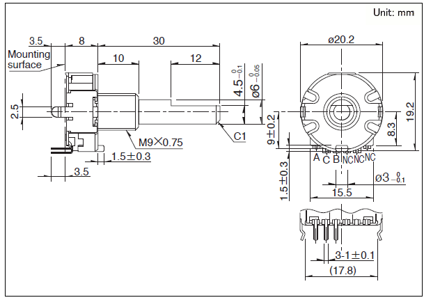 20.2x19.2x10 20型金屬軸型 以相同形狀可對應編碼器/電位器的重扭矩,良好觸感型。