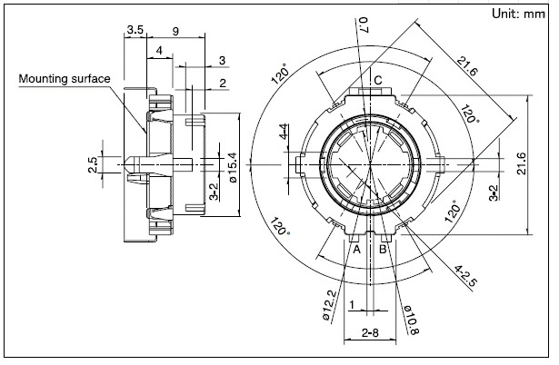 21.6x21.6x4 21型中空軸裝置 適合多功能化的中空型,滿足節(jié)省空間化的厚4mm薄型。