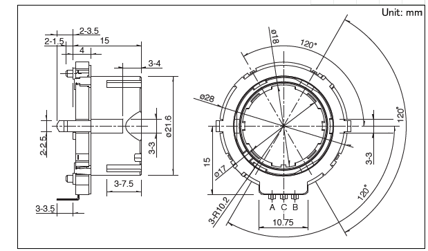 28x29x4 28型中空軸裝置 實(shí)現(xiàn)了本體厚度4mm的薄型化和良好的操作感覺(jué)。