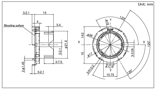 28x29.5x4 28型中空軸裝置 實(shí)現(xiàn)了本體厚度4mm的薄型化和良好的操作感覺(jué)。