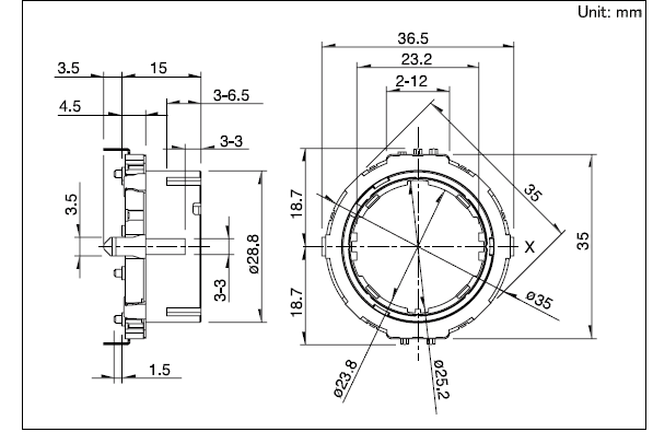 35x35x4.5 35型ABC開關(guān)型 可復(fù)合化的中空軸型。