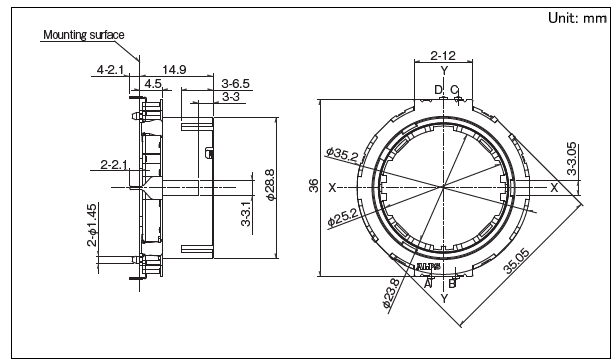 35.2x36x4.5 35型ABC開關(guān)型 可復(fù)合化的中空軸型。