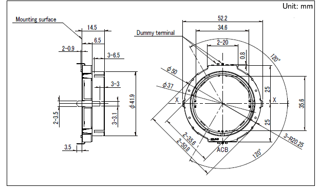 50.8x50x6.5 50型中空軸裝置 內(nèi)徑φ37mm且可搭載小型LCD的大型產(chǎn)品。