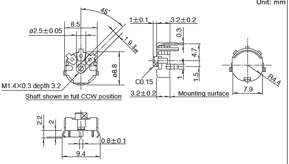 旋鈕后安裝型,適合于調(diào)整音質(zhì),音量的小型狀型
