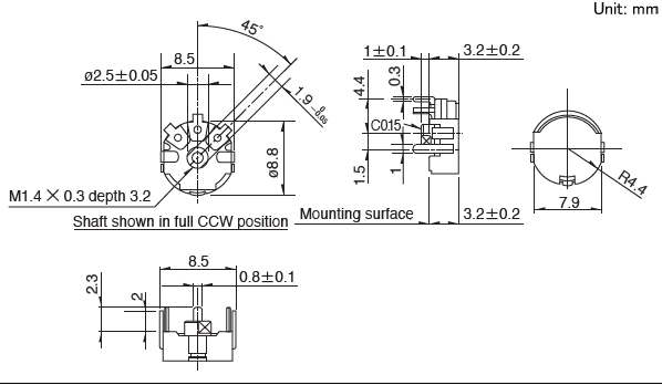 旋鈕后安裝型,適合于調(diào)整音質(zhì),音量的小型狀型