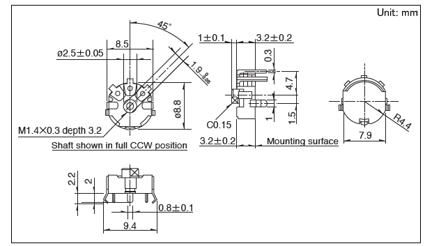 旋鈕后安裝型,適合于調(diào)整音質(zhì),音量的小型狀型