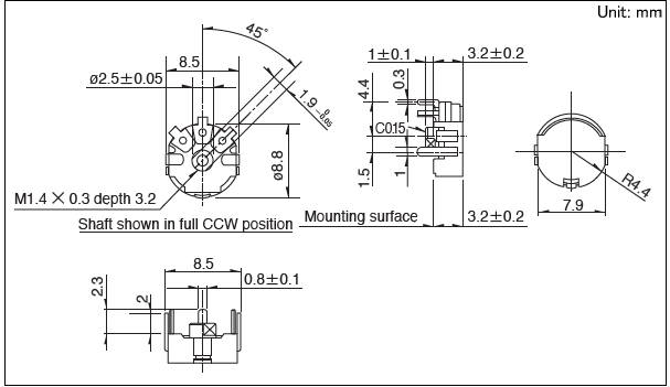 旋鈕后安裝型,適合于調(diào)整音質(zhì),音量的小型狀型