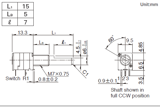 1軸帶旋轉(zhuǎn)開關(guān)型。各種控制用,具有廣泛用途的9.6mm寬型。