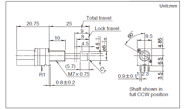 1軸帶鎖緊裝置型。各種控制用,具有廣泛用途的9.6mm寬型。