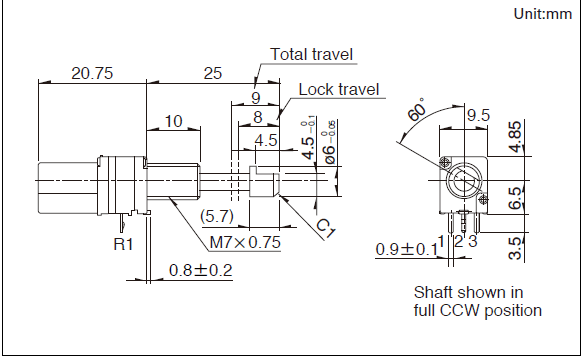 1軸帶鎖緊裝置型各種控制用,具有廣泛用途的9.7mm寬型。