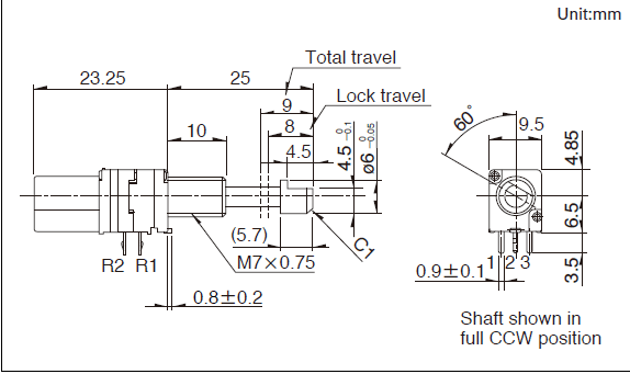 1軸帶鎖緊裝置型。各種控制用,具有廣泛用途的9.12mm寬型。