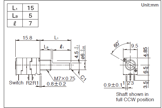 1軸帶旋轉(zhuǎn)開關(guān)型。各種控制用,具有廣泛用途的9.16mm寬型。