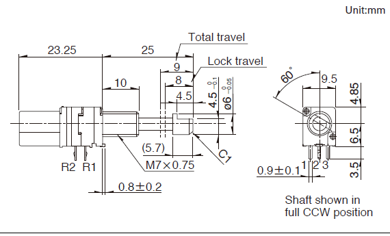 1軸帶鎖緊裝置型。各種控制用,具有廣泛用途的9.16mm寬型。