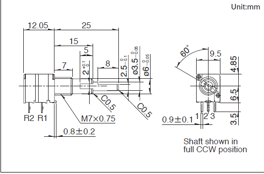 2軸2聯(lián)無(wú)開關(guān)型。各種控制用,具有廣泛用途的9.16mm寬型。