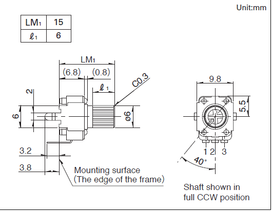 操作部長度 LM1: 15mm