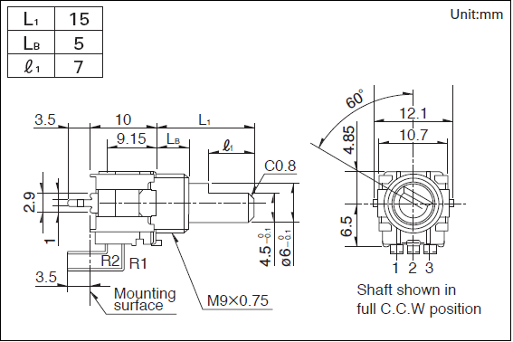 操作部長(zhǎng)度: 15mm