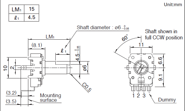操作部長(zhǎng)度 LM1: 15mm