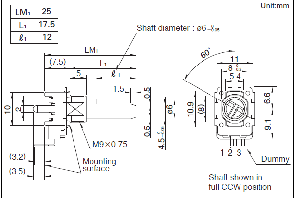 操作部長度 LM1: 25mm