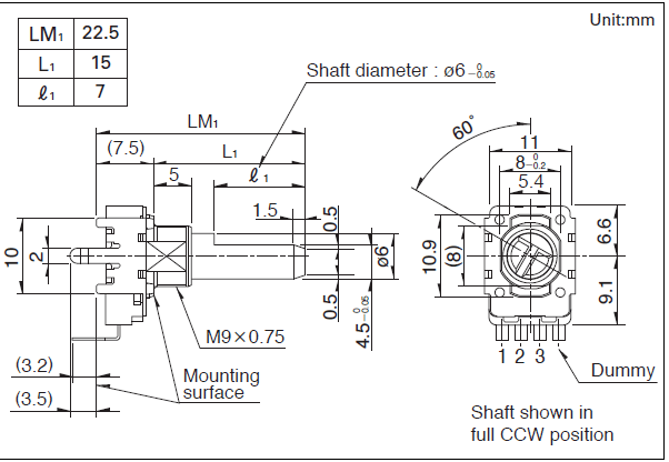 操作部長(zhǎng)度 LM1: 22.5mm