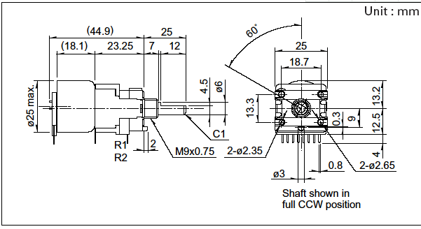 操作部長(zhǎng)度: 25mm,總阻值