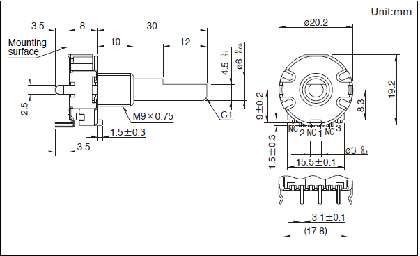 20型金屬軸型,能夠用相同形狀對應(yīng)電位器/編碼器的重扭矩, 觸感良好的型號