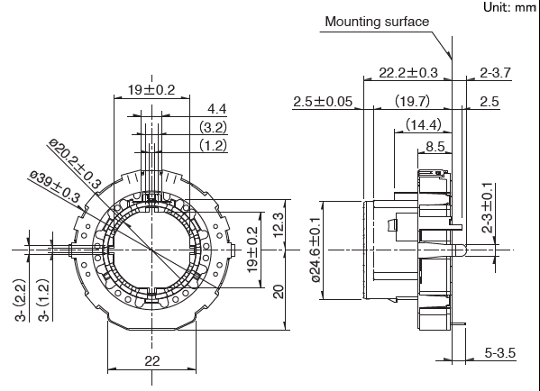 帶有LED照光的39mm型,最適合于各種整機把手設(shè)計的帶有LED照光的可變電位器。