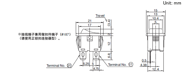 對應10A 250V AC型安裝簡單的按入式方式的小型·高容量型。