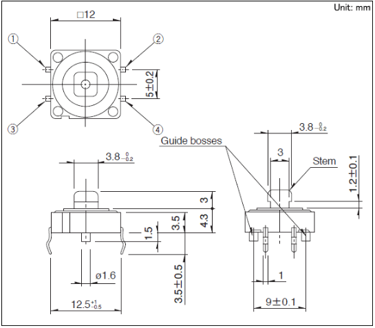 12x12x12mm 12mm方型(按入式)具有穩(wěn)定操作感的連接式軸感和和平面軸桿。