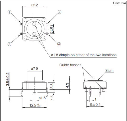 12x12x12mm 12mm方型(按入式)具有穩(wěn)定操作感的連接式軸感和和平面軸桿。