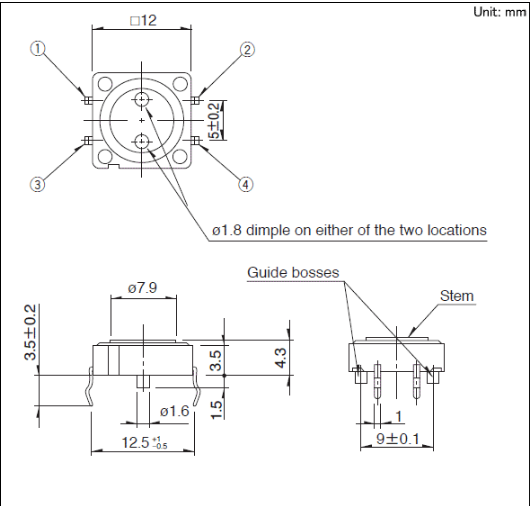 12x12x12mm 12mm方型(按入式)具有穩(wěn)定操作感的連接式軸感和和平面軸桿。