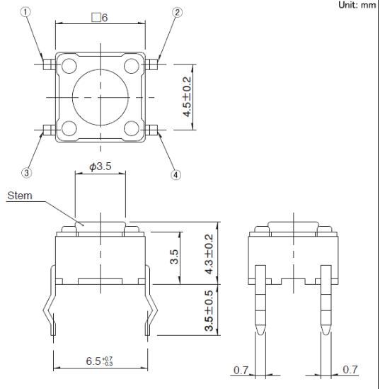 6x6x5mm 6mm方型(按入式) 易使用且有豐富的產(chǎn)品種類(lèi)而受到好評(píng)的6mm方型。