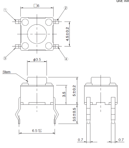 6x6x5mm 6mm方型(按入式) 易使用且有豐富的產(chǎn)品種類而受到好評的6mm方型。