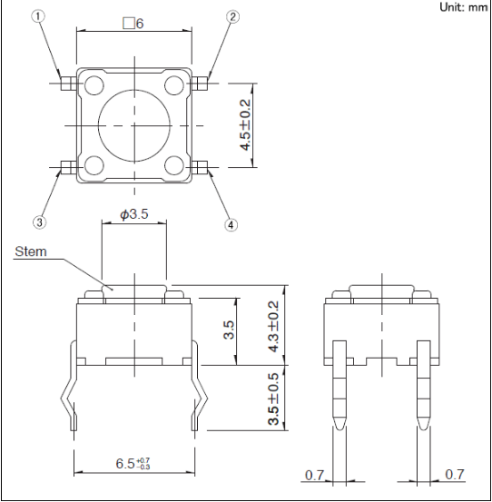6x6x4.3mm 6mm方型(按入式) 易使用且有豐富的產(chǎn)品種類而受到好評的6mm方型。