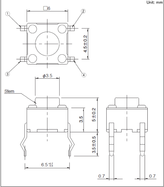6x6x5mm 6mm方型(按入式) 易使用且有豐富的產(chǎn)品種類而受到好評的6mm方型。